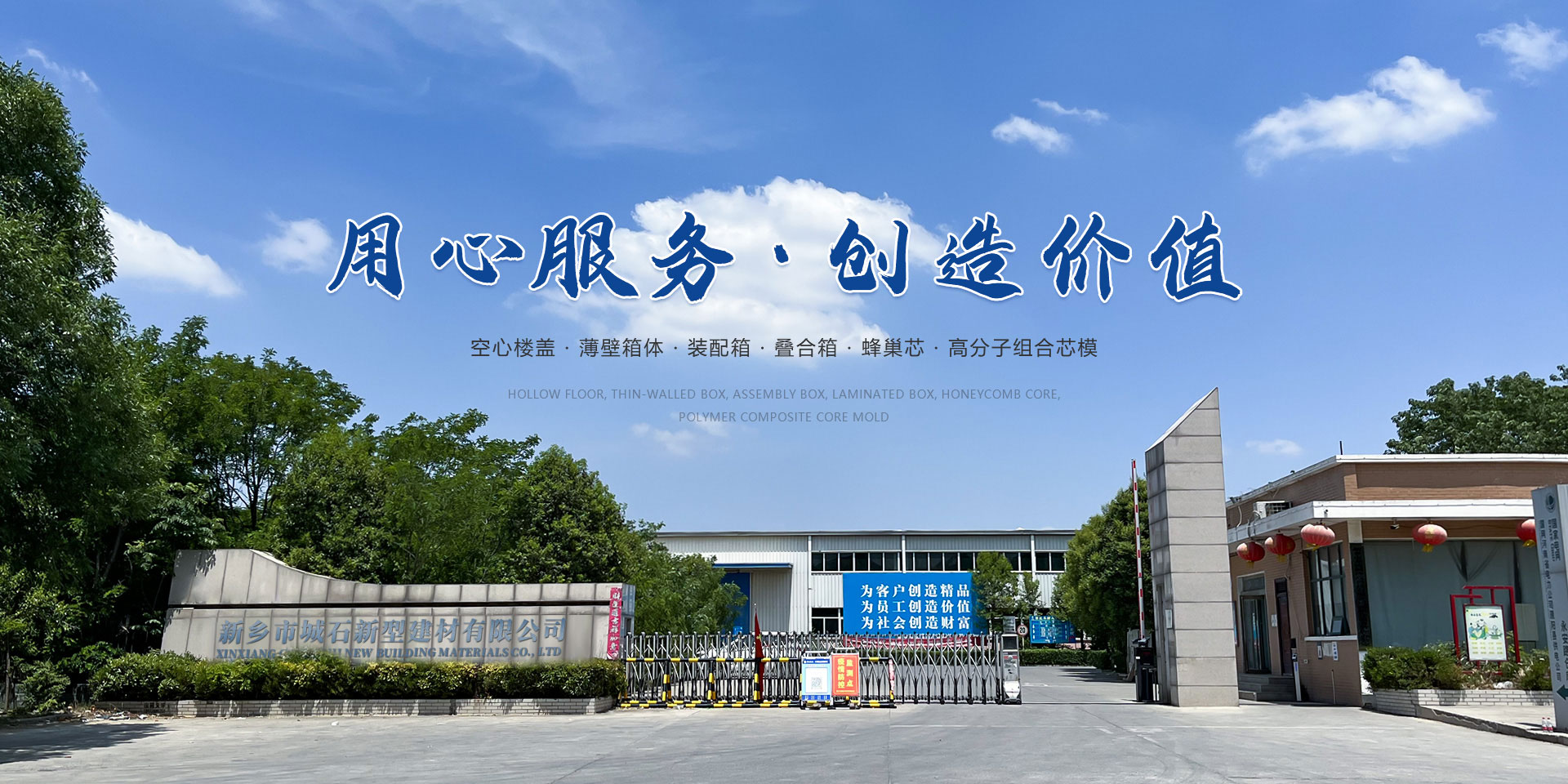 新鄉市城石新型建材有限公司是一家研究、開發、推廣與應用建筑新技術、新材料、新產品于一體的**技術企業。主要開發經營---空心樓蓋、現澆空心樓蓋、薄壁箱體、裝配箱、疊合箱、蜂巢芯、高分子組合芯模、高柱合金內模、pmx輕質復合箱體、空心箱體、空腔內模、組合內模等。我公司專注從事各種跨度荷載及大空間現澆混凝土空心無梁樓蓋技術。是全國建筑結構創新和推廣新產品的單位,...